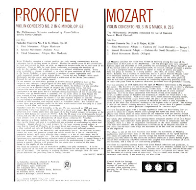 We have an interesting pairing of violin concertos, Prokofiev's second with Mozart's third. Both are given beautiful performances. The sound of this record is warm, rich, and vibrant, and while I have not had the pleasure of hearing the original blue/silver SAX, I suspect that the WRC probably comes very close at a mere fraction of the cost. I like the balance between soloist and orchestra on this recording; to my ears, the presentation of Oistrakh's violin is slightly more laid back but blends nicely with the Philharmonia. This is in contrast to some of the Leonid Kogan concerto recordings for Columbia, which seem to place him very clearly front and center with the orchestra sounding like a round mass behind him. A wonderful WRC and a bargain when compared with the original SAX.